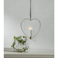 28cm heart in brass colour, with our nice looking antique candle Flamme in 15cm included. Great to decorate in a window or on a wall. Avoid hanging in direct sunlight as the wax candle may melt from the heat.