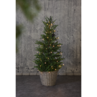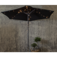 Light chain with 64 warm white LED lights and with battery box for in- or outdoor use, run by 3xAA batteries. For optimal battery life, the light chain has repeating timer function, 6h on and 18h off. Use as both parasol light in summer time and as a tree light for christmas.
