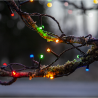 Light chain with 100 multicoloured LED that gives a cozy light. With 7 cm spacing between the bulbs the light chain is about 7 m long. Prefect for your garden or patio. The light chain has a build-in timer and 8 function chaser box in the transformer. Choose between steady or different chasing effects. Comes with a practical box for easy storage when not in use.