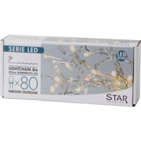 Serie LED with 80 pcs 5mm LED-bulbs and transparent cable. Decorate with this beautiful light chain outdoors and get a nice glow in the dark.