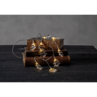 Battery operated indoor light chain with transparent decorations in the shape of christmas trees. Decorative decor that gives a cozy shine in the christmas tree or on the table. Runs by 2 pcs AA batteries (not incl).