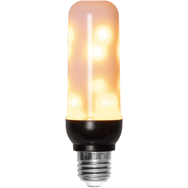 Decoration LED-lamp with flaming shine that resembles a burning fire. The color temperature is 1600K and has a E27 cap. Since the light is flickering the lumen level varies, maximum is 80lm. The gravity sensor makes the bulb suit any fixture since the flames always burn in the right direction!