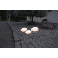 Solar decoration in the shape of a white stone. Lights up in Your garden during the dark hours with a white shine.